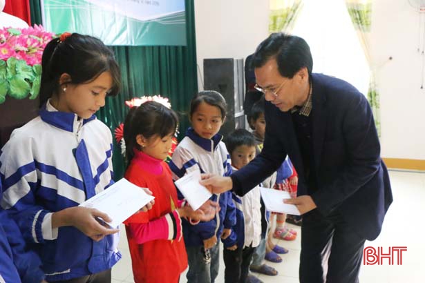 Cũng tại lễ bàn giao, Vietcombank Hà Tĩnh và HAINDECO trao 20 suất học bổng cho học sinh nghèo học giỏi của Trường Tiểu học Kỳ Thượng, mỗi suất trị giá 1.000.000 đồng.